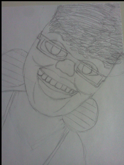 Next I did a self portrait of myself. I started by drawing the interior parts of my face which include my nose and mouth. After that I added more strokes to the nose and mouth to make the drawing come to life. Then I tried the best I could to draw the outer parts of my body which would include my ears and the top of my hairline. I had a hood on so I wanted to make myself appear as though I had one on. I think that was one of the best drawings I did this year.