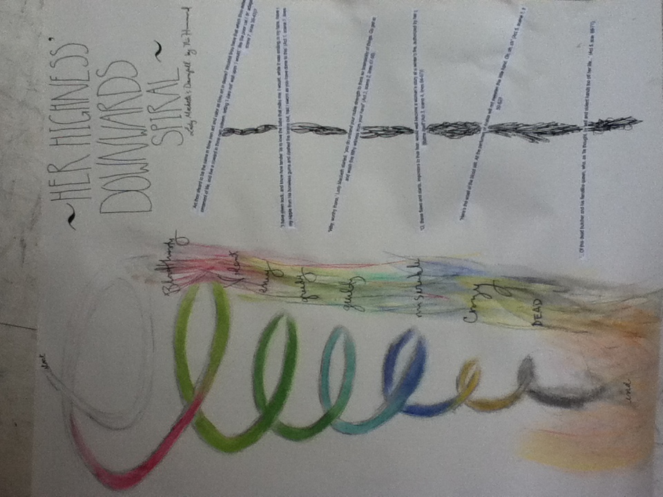 The artwork is based on Lady Macbeth. The sculpting is symbolizing Lady Macbeth’s important key in the book. The first sculpting is about power because at the beginning of the book, she became really obnoxious with the power. She wanted to take over the control and guided her husband, Macbeth to be the king. The next following sculpting is a knife. It shows that Lady Macbeth encourage Macbeth to kill King Duncan so both of them can get the power. There are quotes when she had talked about the dagger. The third sculpting is a crown. Lady Macbeth had the wish to take the crown as a queen to rule the power with her husband. This shows that the power had symbolized lunatic because she was scared that nobles would find out later. The power was too much for her where she had committed suicide. She didn’t really care about living than suffer in pain of killing. So the sculpting shows a memorial grave for Lady Macbeth’s death.