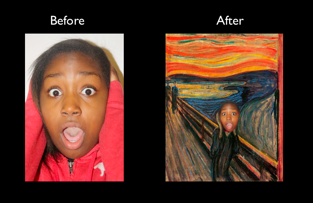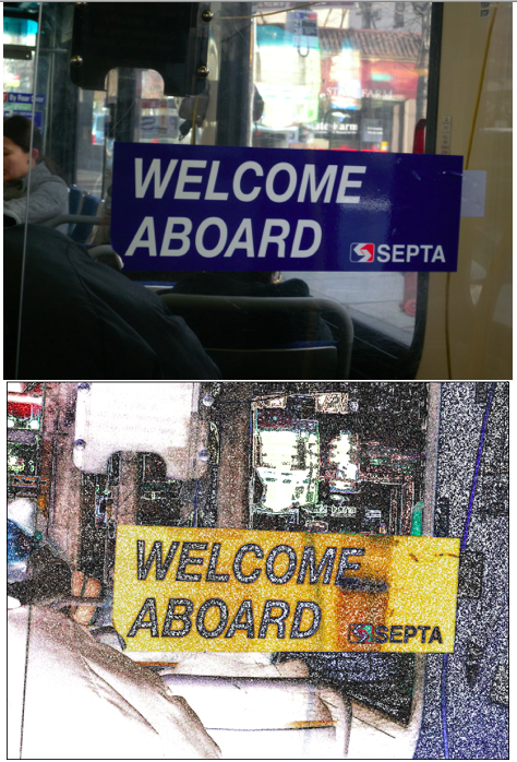 For the two art pieces that were made from my peers, I choose to make them pop with some more color then the original photo had. For the unique snake looking photo I changed the yellow background to a hot pink and made the black strokes to make the snake bright lime green. For the mosaic piece of art that was created, I chose to make the background of that grain like how televisions go when the alerts come on with the different colors, I also decided to brighten the photo and have a painted style stroke to the actual mosaic piece. It came out really nice and I must say these two were my favorite to edit because they fit my personality so well. They're both simple in a way but very noticeable.