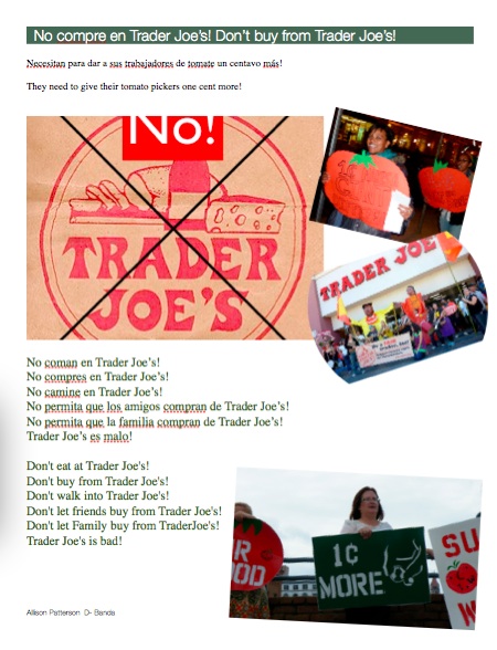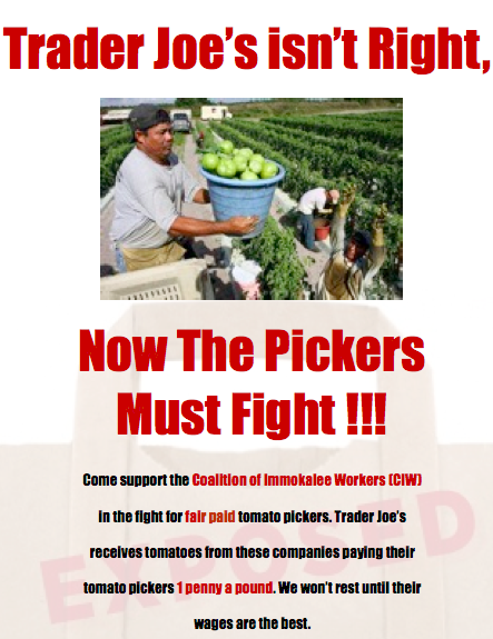 trader Joes is basically taking advantage of the Mexicans and are getting tomatoes cheaper than everyone else because they know that the mexicans can not fight fight back but are still abusing the workers by giving them barely enough to mataining themselves.