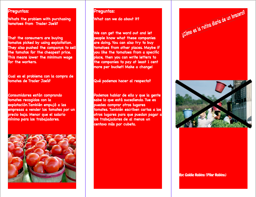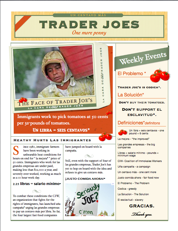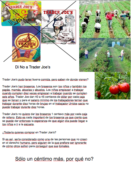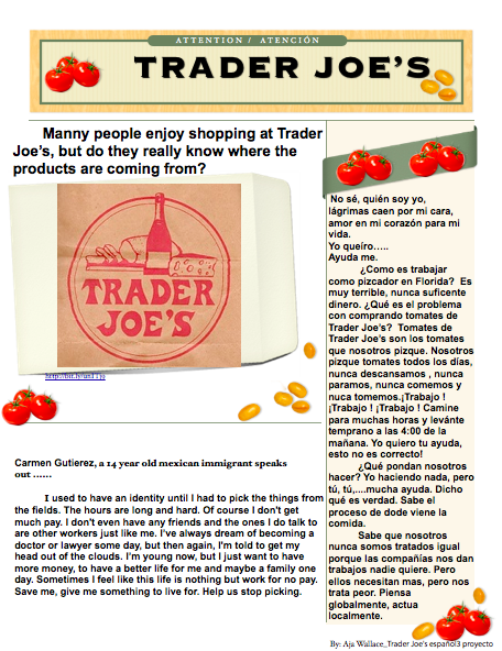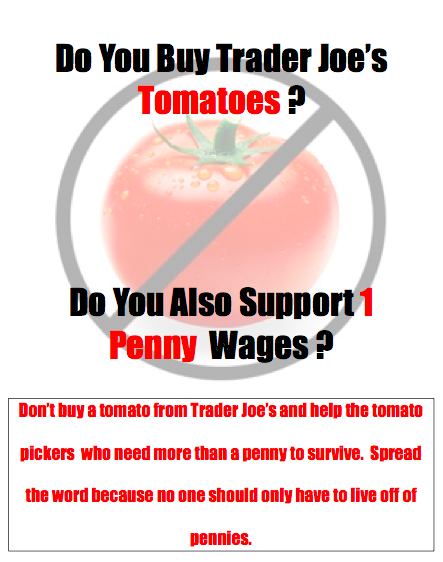 Trader Joes is basically taking advantage of the Mexicans and are getting tomatoes cheaper than everyone else but is abusing the worker but giving them barely enough to mataining themselves.
