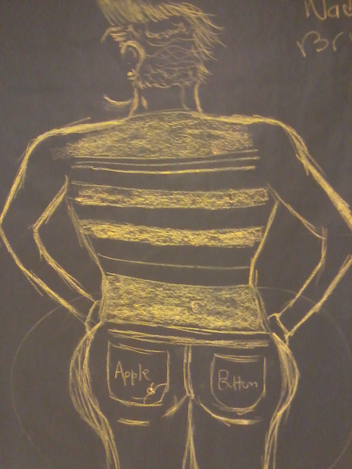 I drew this as a portrait to Jasmine. In the beginning it was suppose to be of Sam Boyd, but I kept having to start over. I drew Jasmine as I saw her and the best way I could. Her shoulders I drew broad to represent her inner and outer strength which she shows everyday. I drew her waist slim and her butt big wide because it is.