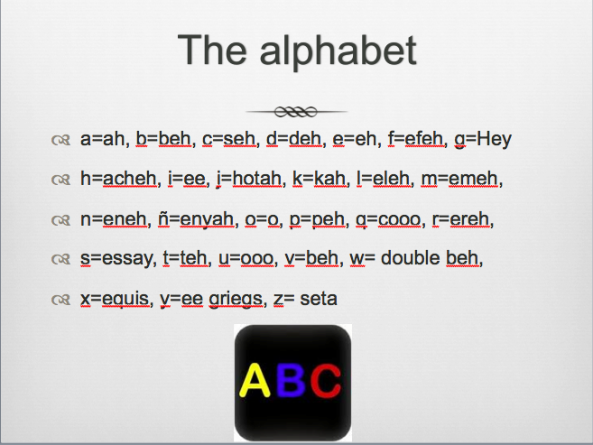 When writing something in Spanish, you need to learn how to say and write the letters in Spanish. Below is a table that shows the letters in English and then the names in spahish and how to pronounce it in Spanish.