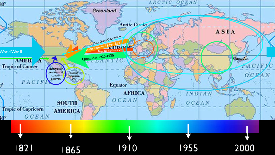 project with Morgant Marant was not only the differences between the time periods of immigration in relation to history, but the unexplainable parts of immigration. Some of the reasons we found were that over time, a combination of the past and present events created a numeric value of how large or little the population increase became for that decade.
