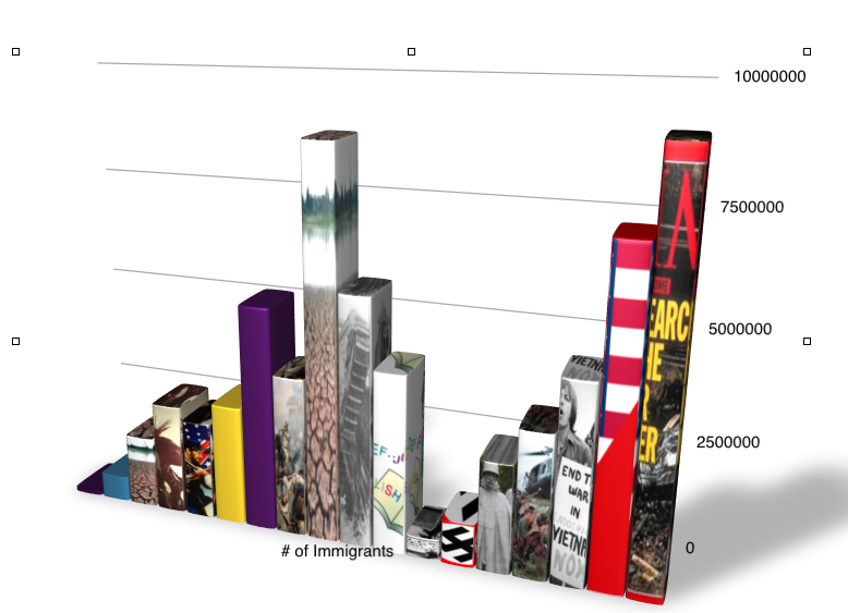 The challenges of this project were finding a way that both Morgan and I could work on the project at the same time, finding pictures that fit the decade and expressing a clear explanation of how the decisions of the government clearly affect the rate of immigration. Also, it was a challenge to push for a further explanation of immigration. Sometimes, there were doubts as to why the changes happened the way they did.