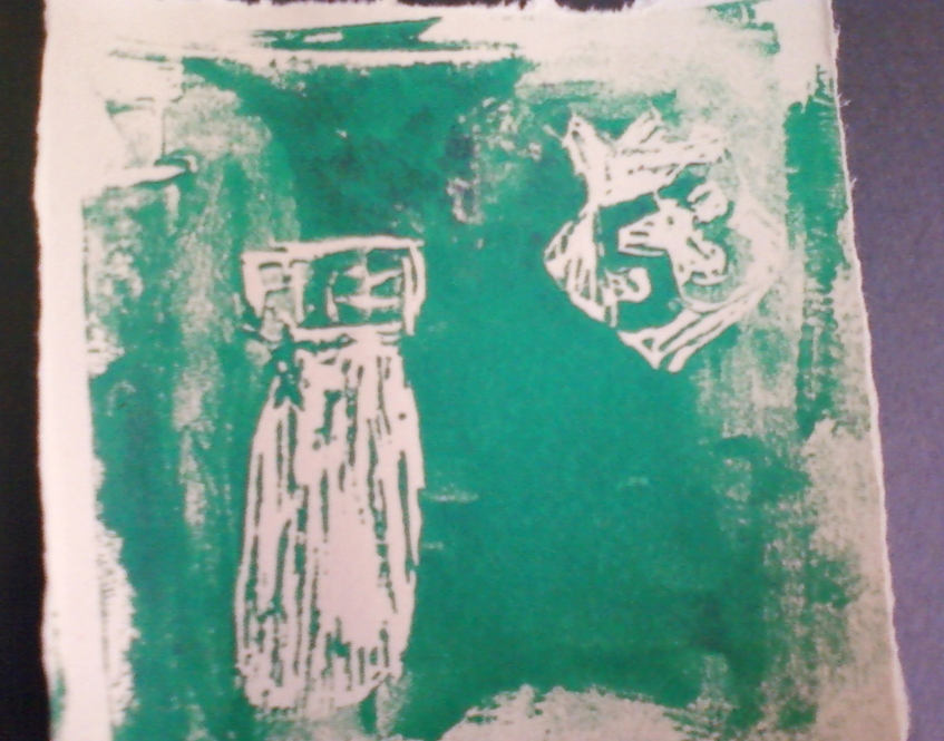 I had first draw an idea, and then I traced that onto a linoleum