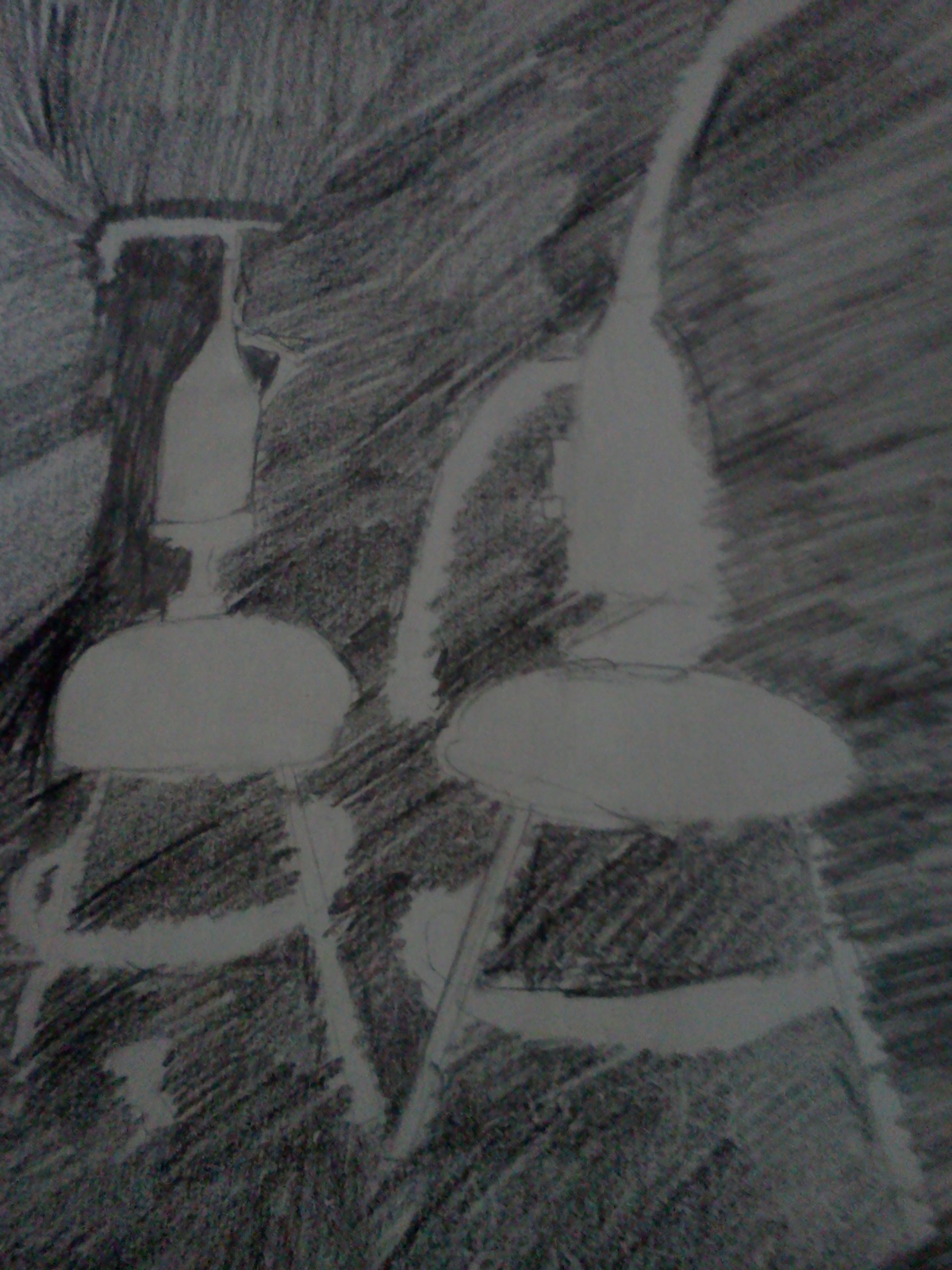 In the stool drawing we drew what we seen and how the stools look for the regular drawing. Fro the negative space stool there was green paper behind it, and we just drew the green paper. It easier to see the negative space, in the drawing with color.