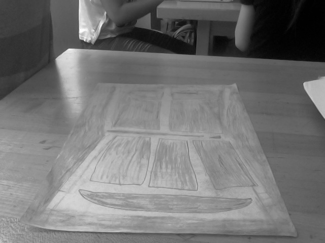 1. I found it in the cut out after ms. Hull explained how it's basically just cutting it out, and flipping it over onto the other side. 2. I found it in my stool drawing by looking in between the objects and basically just looking wherever i saw orange (there was an orange paper hanging behind the display)