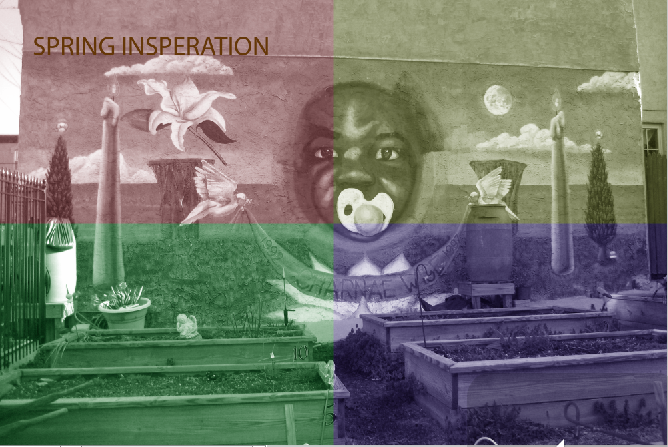 The last photo shows different warm colors over a garden to represent spring
