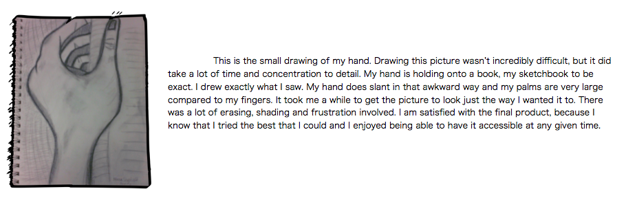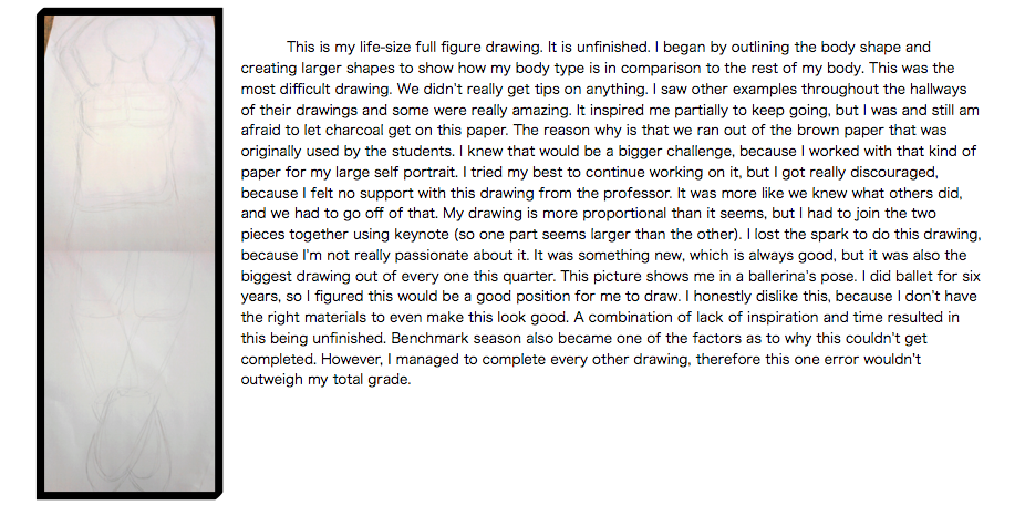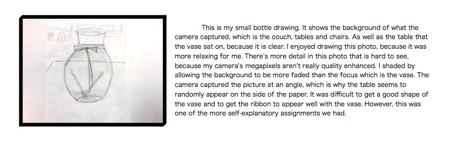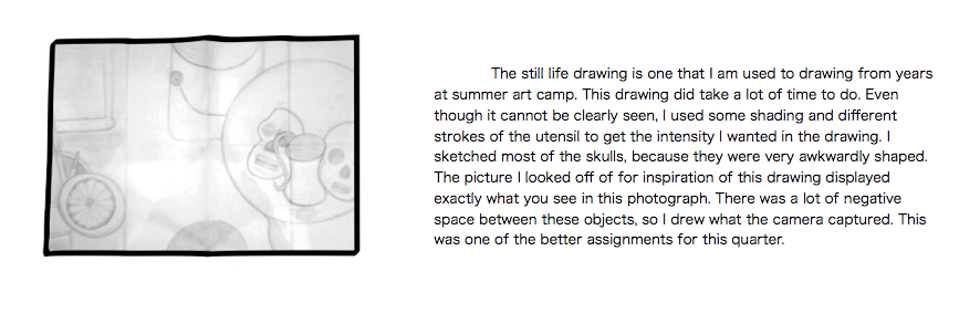 En ésta obra de Claudio Bravo, vemos cuatro bolsas differente. Dos bolas estan blanco, una bolsa esta verde, y una otra bolsa esta amarilla. Dos pequeña bolsas estan enmarcado de dos bolsas mas grandes. Ellos se sientan en una mesa. Las bolsas estan iluminadas de un fuenta de luz invisible. Detrás de ellos, unos nubes flotan en un cielo morado. El tono es tranquilo pero presentimiento. Los colores son cálido, pero en sombra. Las bolsas son de color claro, y el fondo son oscuro. No esta evidente donde la escena esta - la mesa se parece a una mesa en una galería del arte. La iluminación es anguloso y llamativo. Las bolsas tienen las sombras largo. Las arrugas en el papel de las bolsas es muy definido. La estilo es muy, muy realista. Claudio Bravo es una “hiperrealista.” El es posiblemente influenciado de Diego Velázquez, una artista de España quien pintaba muchas pinturas realismo famoso.