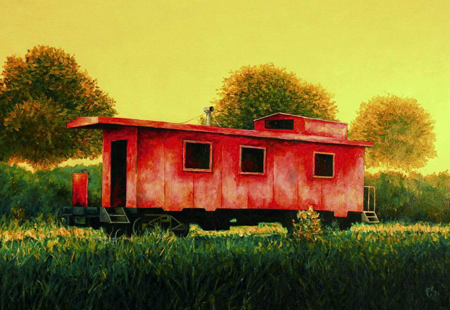 que destaca mas es rojo el color de un parte de tren.El tono de pintura es agridulce como el ron. El fondo es muy