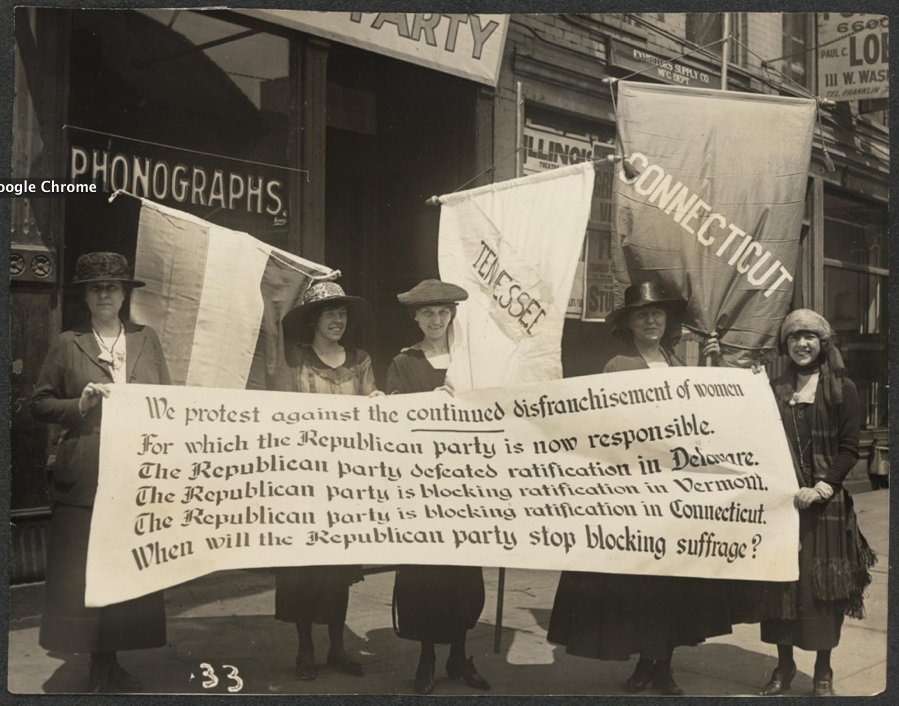 *"Women protesting." Web. 18 Mar 2011. <http://upload.wikimedia.org/wikipedia/commons/3/30/ A_group_of_women_on_the_sidewalk,_June_3,_1920.png>.