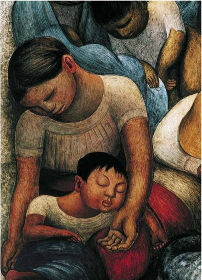 niñez, y colores muy brilliantes. Este pintura es de una familia de los