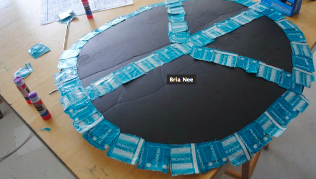 Collecting the material for this project I would say had to be amusing. To actually get condom wrappers to recycle them was awkward, but there were some people that was able to donate to my project. I wouldn't say that this is just my art project it wouldn't be able to have it's meaning without the help of others.