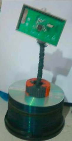 dvds & cds, a mother board, a cd stand, glue, & wire. I glued each cd & dvd, stacking
