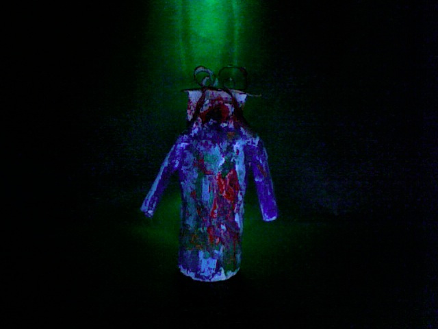 Unfortunately, I was unable to finish my dress. It took me a very long time to figure out a design, but eventually I settled on a v-neck dress with cascading newspaper along one seam. Around the later days of my process, after cutting, gluing (I still have some burns), and assembling the dress, I realized that I didn't have enough time to finish. When I realized this, I found out another horrible truth. My mother's boyfriend was looking for a trash bag, and picked up my dress. attempting to open the "bag", he tore the art by both seams. That was about four weeks worth of work, down the drain. You can imagine how livid I was with him.