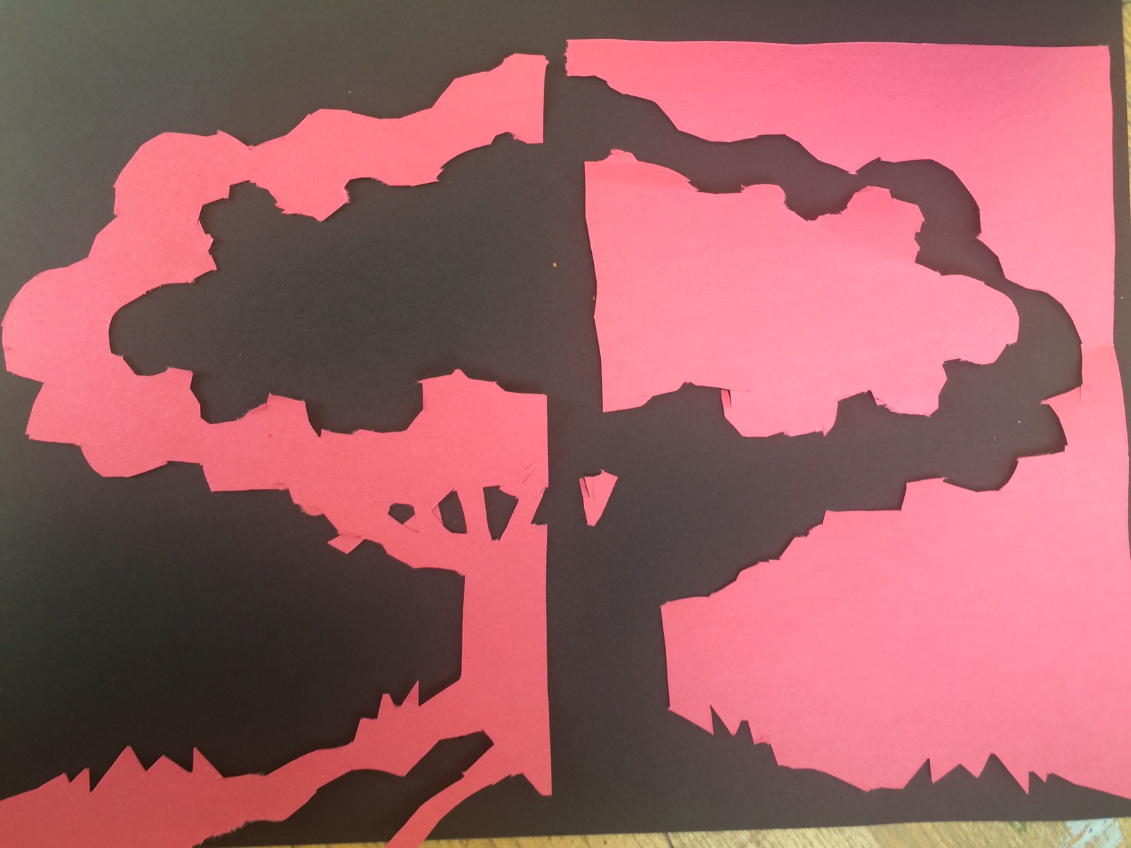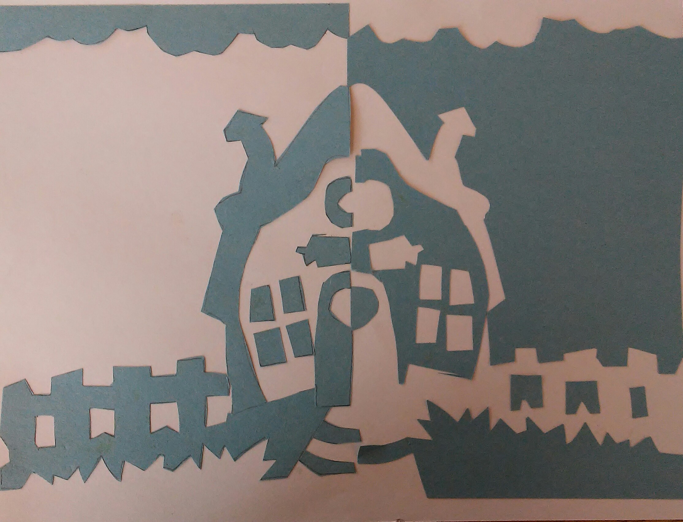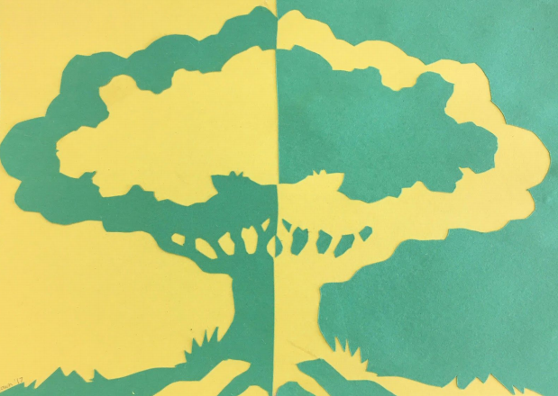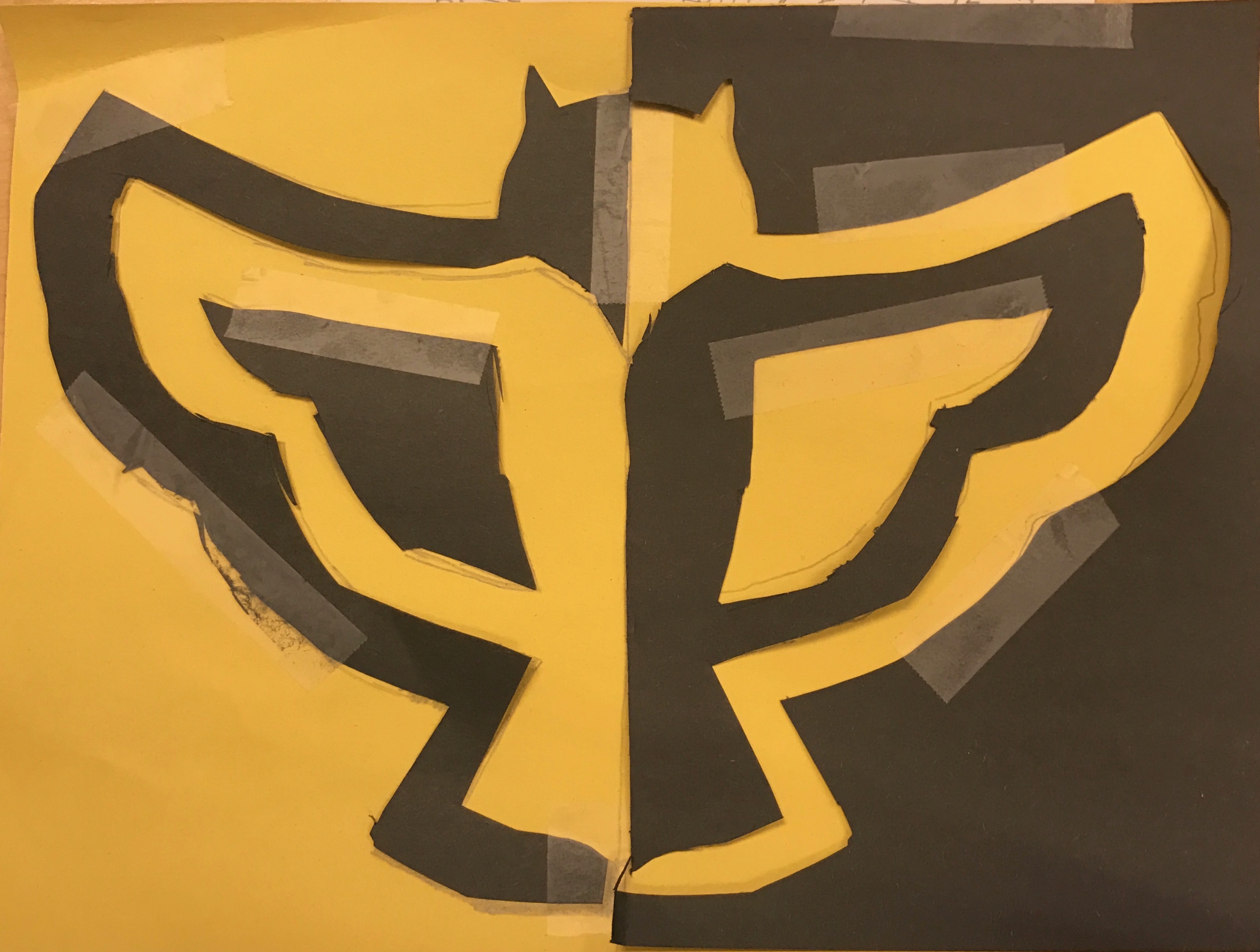 Negative space is the space around and between an image that can help create that image or make it pop out. White and Black are the typical colors you would use for Negative space because they contrast each other so much. You can use other colors, however, as long as they make the other visible. You can find Negative Space in my cut out thanks to the contrast of Yellow and Black. By using these colors, you can clearly see the shape of an owl, which is how Negative Space is supposed to be used.