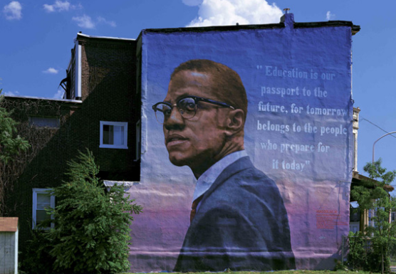 Este mural muestra sin educación que no habría un futuro mejor. También, que necesita educación para tener éxito en la vida. Esto demuestra que Malcolm X está de pie para la educación.Este mural se encuentra en 128 N. Broad Street.