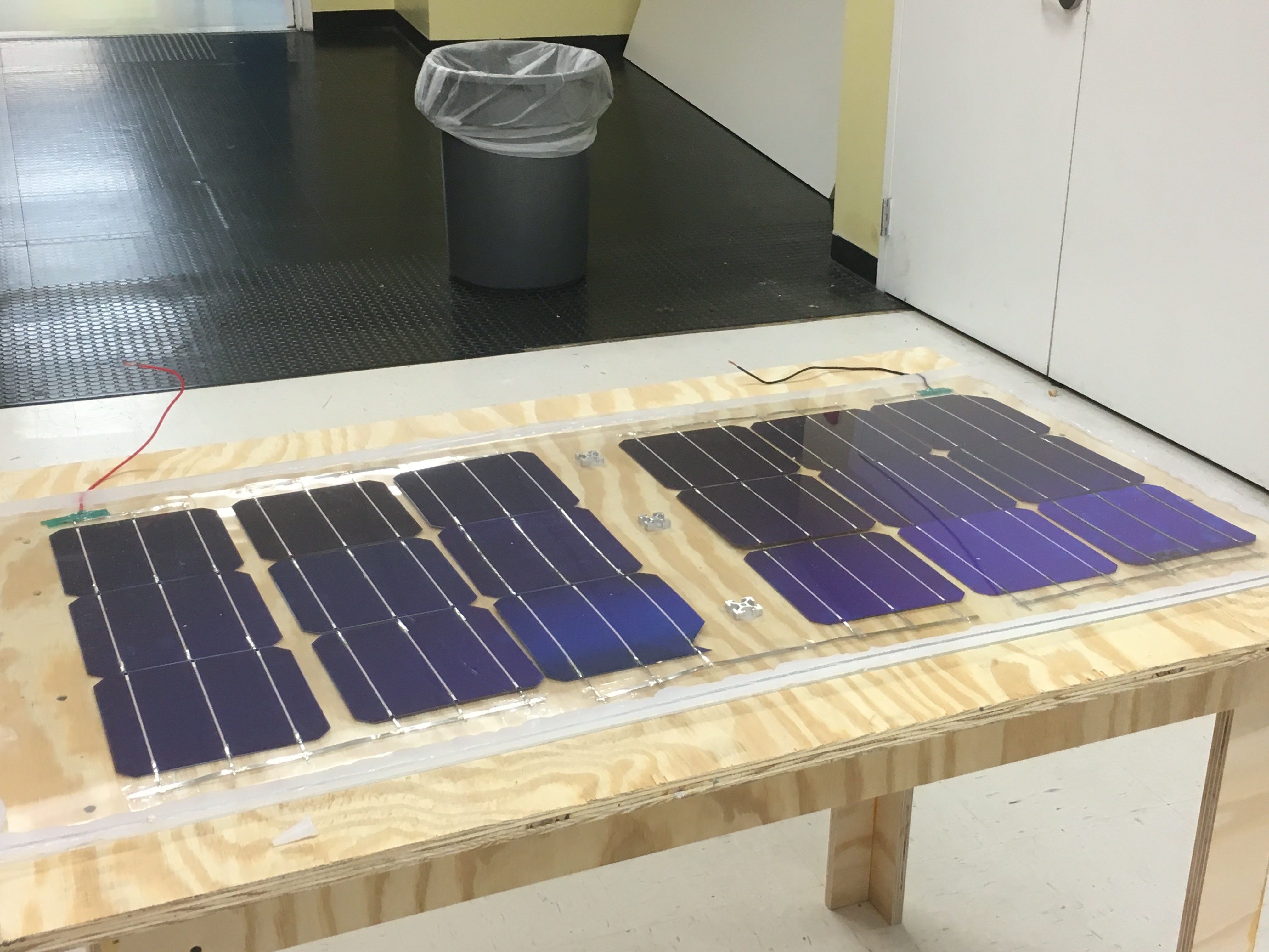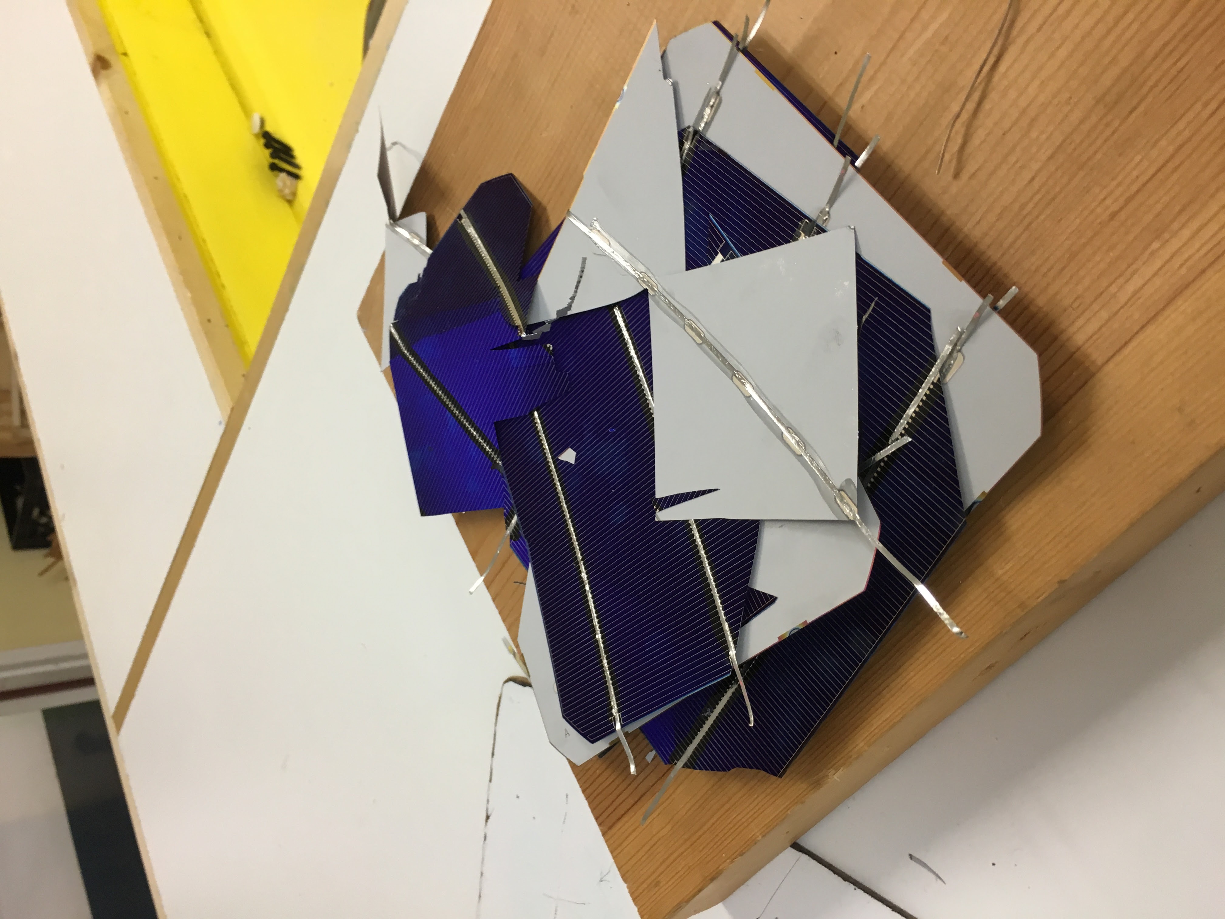 My job was creating the solar panel. After getting the solar cells, I realized that there was more work to be done than I originally thought. The cells that I ordered needed to have tabbing wire soldered to each cell to wire them together. The biggest issue was that solar cells are extremely fragile and any moderate force would shatter them. Thus, creating the solar panel required a lot of patience; a lot of cells were broken by the end of the project. I spent a lot of time with my mentor and engineering teacher John Kamal problem solving and learning about electronics. He was a huge help in completing this project and kept me on the right track.