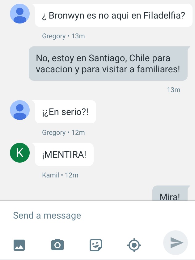 Ailin- (picks up phone call) ¡Hola mis amigos!