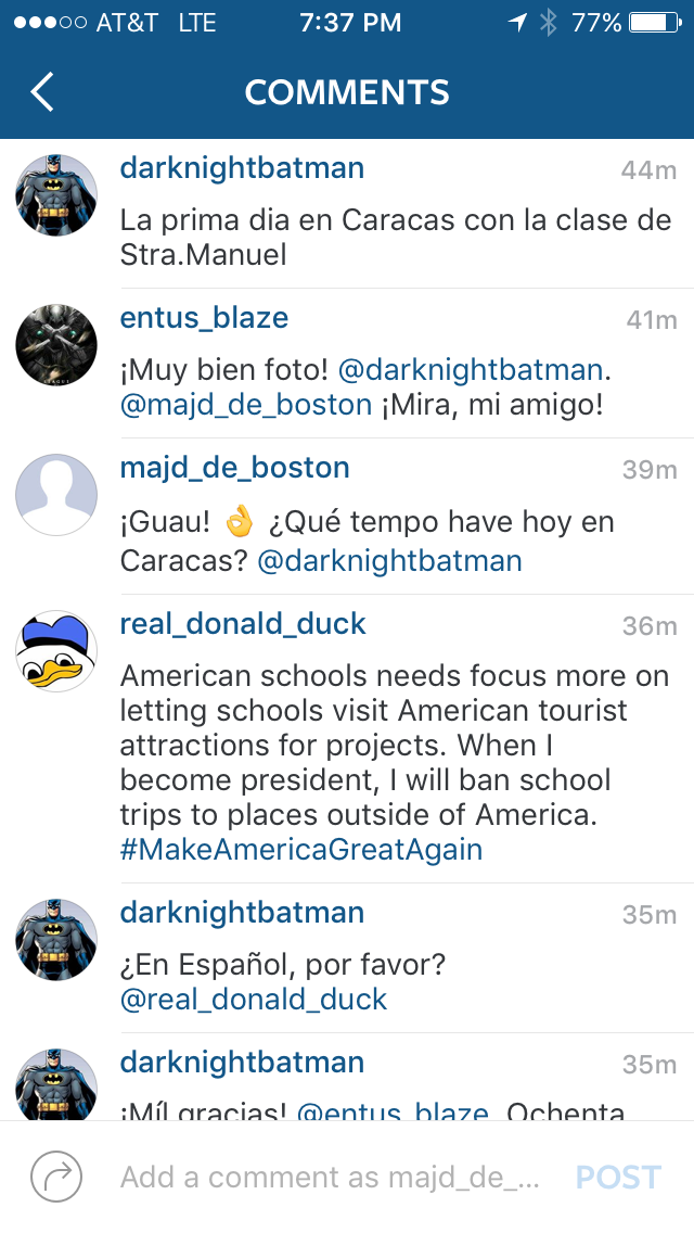 Ayala- ¡Hola! Veo tus fotos en instagram. ¡Me encanta mucho!