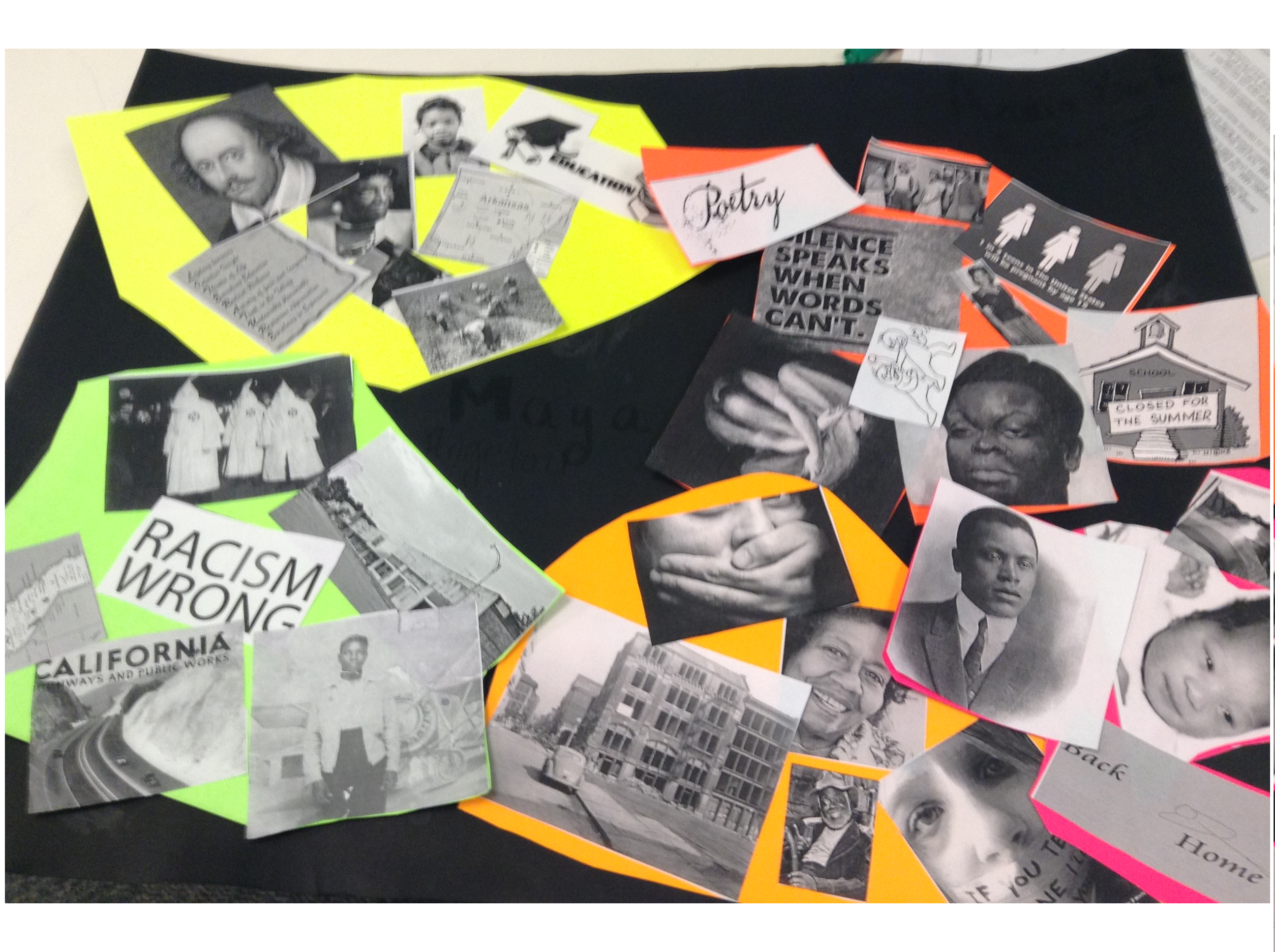 For my Creative portion I wanted to make a collage showing different portions of Maya Angelou's life. My pictures on the neon green papers represent Maya’s life when she moved to Arkansas at three years old. Maya lived with her grandmother and her uncle in Stamps, Arkansas where her grandmother ran a store thats customers usually consisted of cotton pickers and lumber workers. At a young age Maya had the importance of education embed in her. Maya grew up loving to read, especially Shakespeare.In the green picture the pictures represent the racism that was present in Arkansas and they also represent her father who lived in California. When Maya was almost 8 years old her dad came and decided she should live with her mother. The orange picture represents Maya in St.Louis with her mother Vivian. Vivian had a boyfriend named Mr.Freeman. Mr.Freeman ended up raping Maya when she was only 8 years old and told her that if she were to tell anybody he would kill her and whomever she told. The darker orange pictures represent Maya being silent for many years. She wouldn’t talk to anybody but her brother and her family in St.Louis decided to send her back to her Grandmother where she meets Mrs.Summers. Mrs.Summers starts Maya’s love for poetry but also, more importantly, gets Maya to speak again. A few years later Maya moved back in with her mother and that summer Maya’s dad says he wants Maya to spend the Summer with him in California. In California with her dad Maya meets his girlfriend Dolores who has an immense hate for Maya. Maya and Dolores gets into a physical fight that results in Maya running away for a month where she stayed with homeless kids in a car lot. The pink paper represents Mayas life when she goes back to live with her mother and her mother's husband Cliedell after running away from her father. Maya thinks she is underdeveloped after seeing many other females her age with more voluptuous bodies. She even believes that she is possibly a lesbian hermaphrodite. In order to lay her fears to rest Maya sleeps with an attractive boy in the neighborhood which end up in an unplanned pregnancy. Maya is able to hid her pregnancy for months but soon decides that because she is due very soon that she should tell her parents. They accept her situation and at the end of the book Maya gives birth to a healthy son named Guy.Budget Cuts