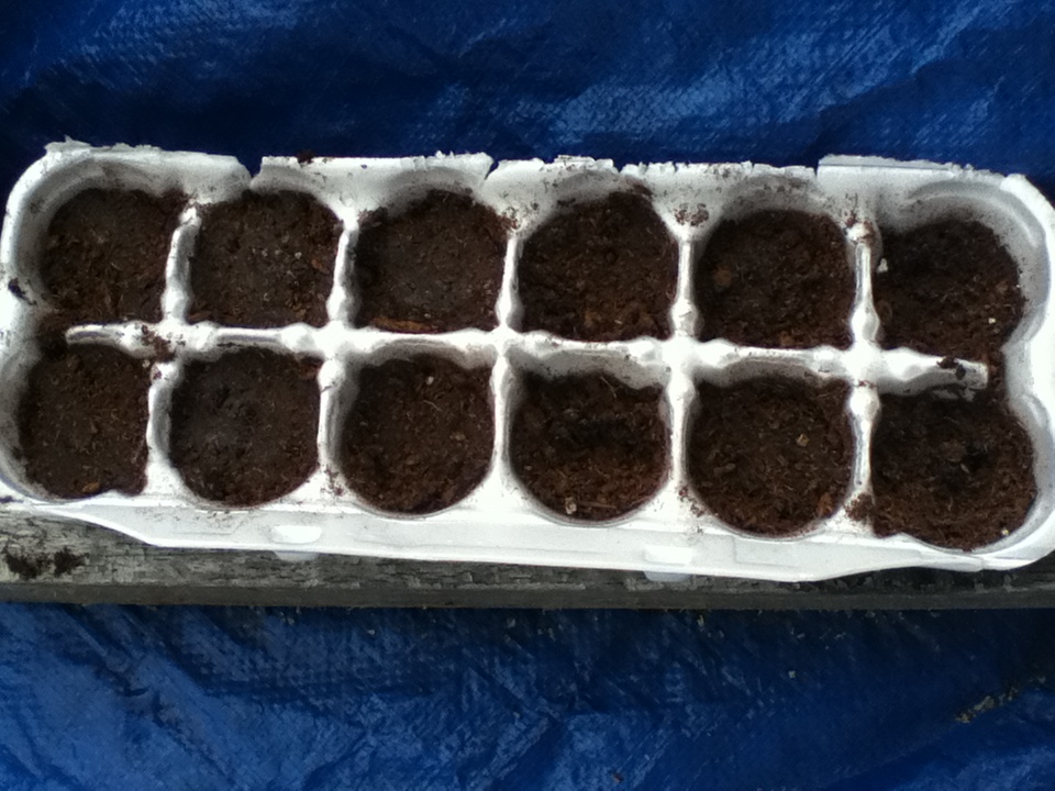 5) Use a spoon and fill up each cupped section with soil but don't over fill it.