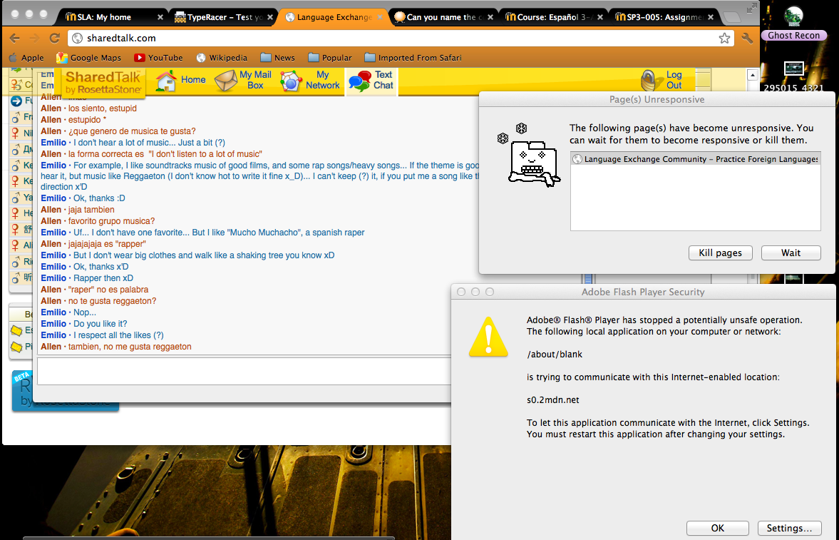 I spoke with a guy from Chile named Karl Reiher. He actually chose to speak with me, barely anyone would respond to my invitations or they declined for a 35 minute period. I spoke to him a day before but during class switch, the session cut and I lost most of the transcript.What did you learn about them? What did you learn from them?