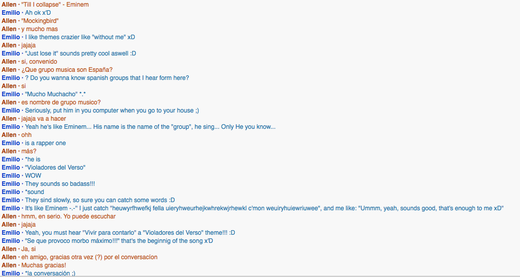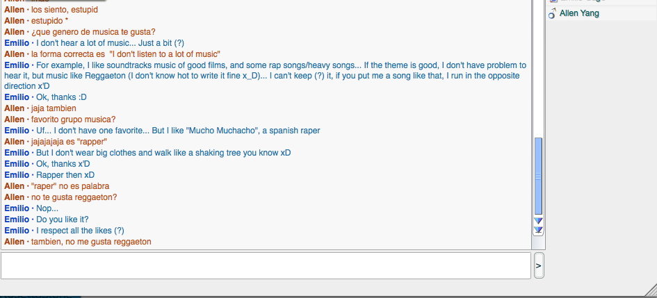 I spoke with this girl from Venezuela named Zulelulsmar. She started the conversation.What did you learn about them? What did you learn from them?