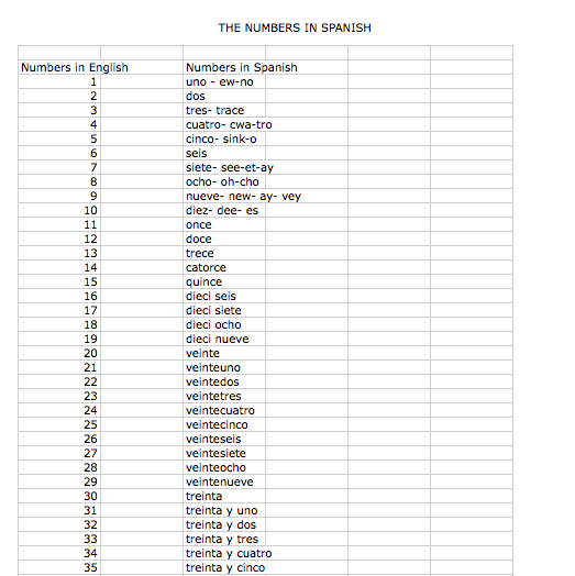 1.The numbers in Spanish