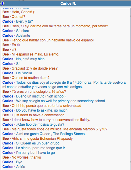 Speaking to a person who could help and converse with me helped me because I started having more fluid conversations in Spanish.