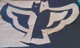 B. I found negative space in my bat through the background and the pieces I cut out. This created the image. In my still life drawing I found negative space by lightly drawing my scissor first and then coloring in the outer boundaries. By drawing lightly at first, it helped me to distinguish my image.