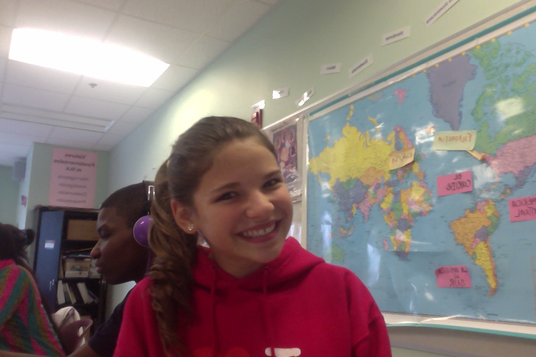 YO: Yo tengo el pelo rubia y los ojos cafés y verdes. Mi cumpleaños doce de agosto. Tengo catorce años.