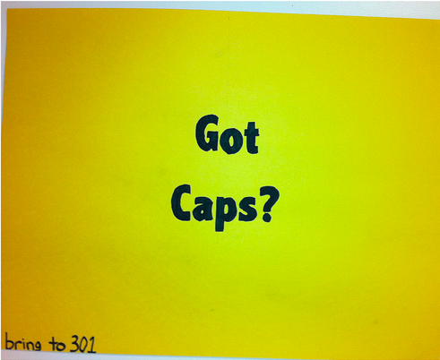 I created a bottle cap poster in order to get peoples attention so that they would bring in bottle caps for my classes project. Each student had to do a poster, and they were hung up around the school.
