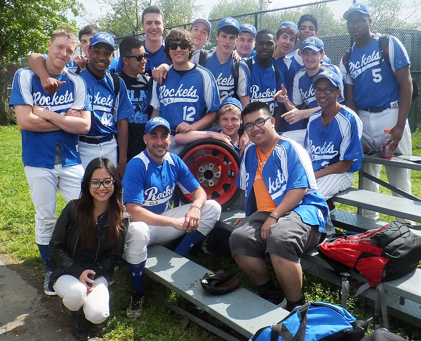 Prior to 1st Pitch on Fri, May 11th, SLA Baseball retired #16 in honor of founding player and coach Brandon Williams, who tragically passed away just before the season started. Former Team Manager Longnu “Lulu” Nhan wore B’s jersey and stood with Brandon’s father during the ceremony. Fellow alumni Chris Cassise, Jeff Schwartz and Isaac Adlowitz came back to celebrate his life and team legacy, while the program also honored graduating Seniors- Ijustice Avery, Tony Brown, Alex Gomez and Trey Matthews- in the pre-game ceremony.