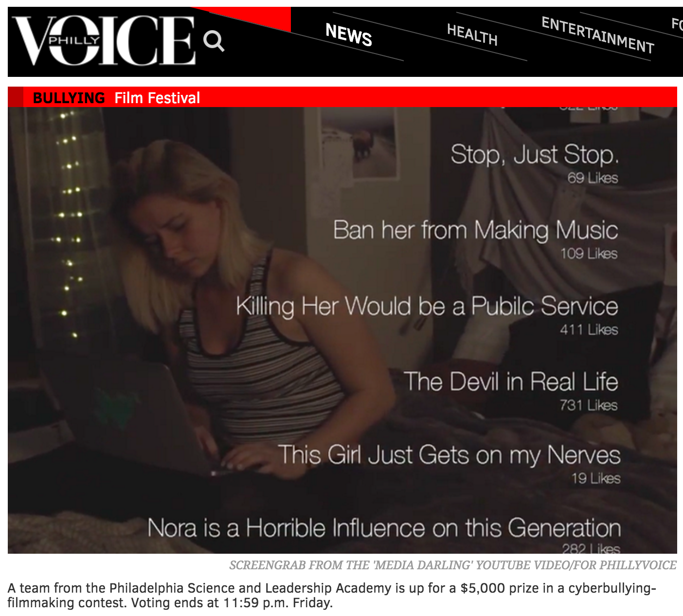 Many thanks to Philly Voice for running a piece on us just in time to reach new audience and give us a boost in voting. http://www.phillyvoice.com/philly-high-school-5000-prize-cyberbullying-film-festival/