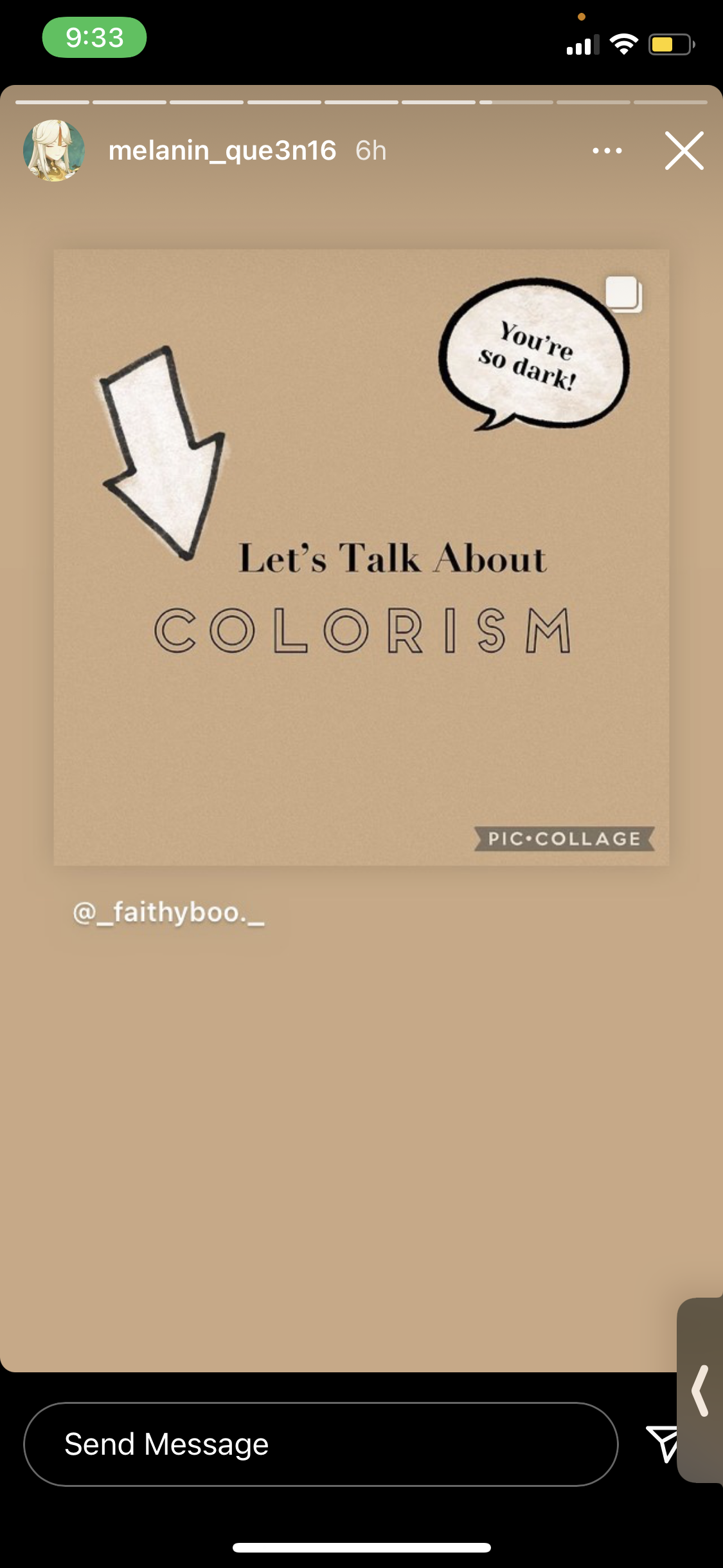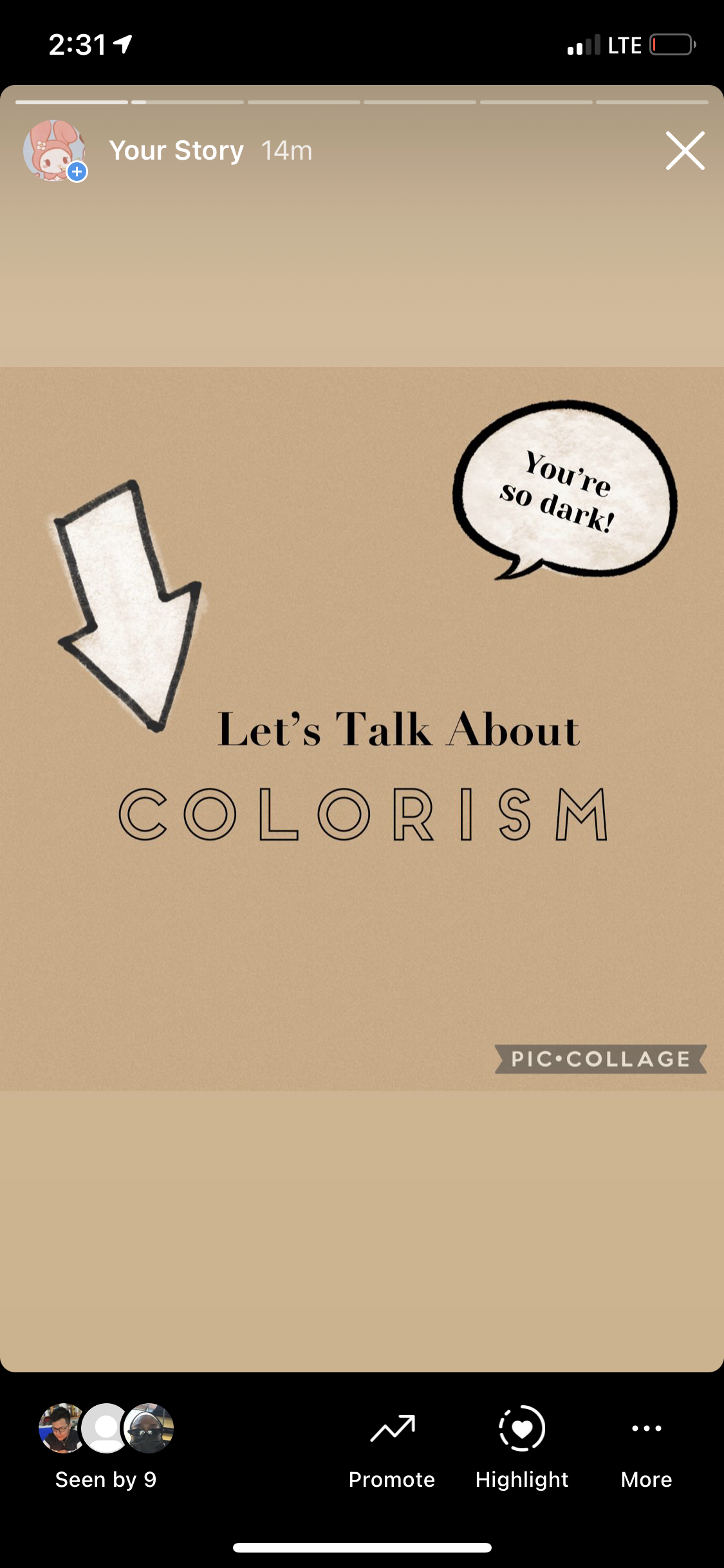 As you can see My friends helped me repost and spread awareness too about the topic. I tried my best to reach out to so many people and I think I did a good job because if I see other people liking it then it must be good for people to realize it’s that important. I think I have the privilege to share about what I know about my topic and how it effects people with darker skin tone. I know it can be hard seeing yourself if you are dark in the media or just being in life because some people can not going to except you but If you are a dark skin person, just know you matter. Everything you do and say matters and you are a beautiful person, don’t like your skin color take over you… embrace yourself and own your skin.