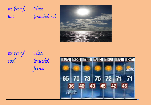 un poquito frío. En el verano hace mucho calor . A veces el temperatura hace 90 degrado. En