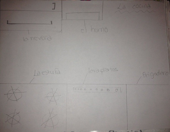En la cocina hay un fregadero, un lavaplatos, un horno, una nevera y una estufa