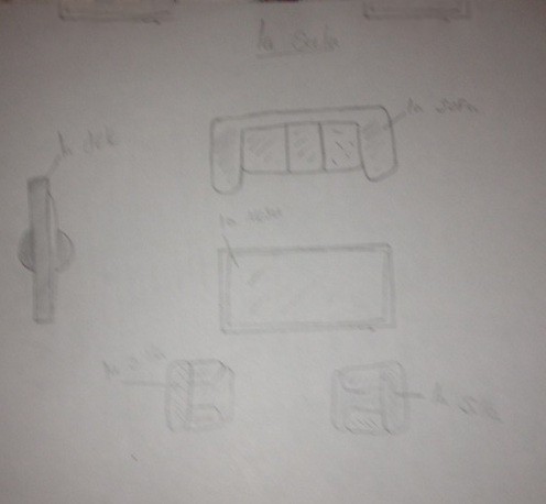 En la sala hay una sofá, un tele, dos sillas, una mesa, dos ventana.