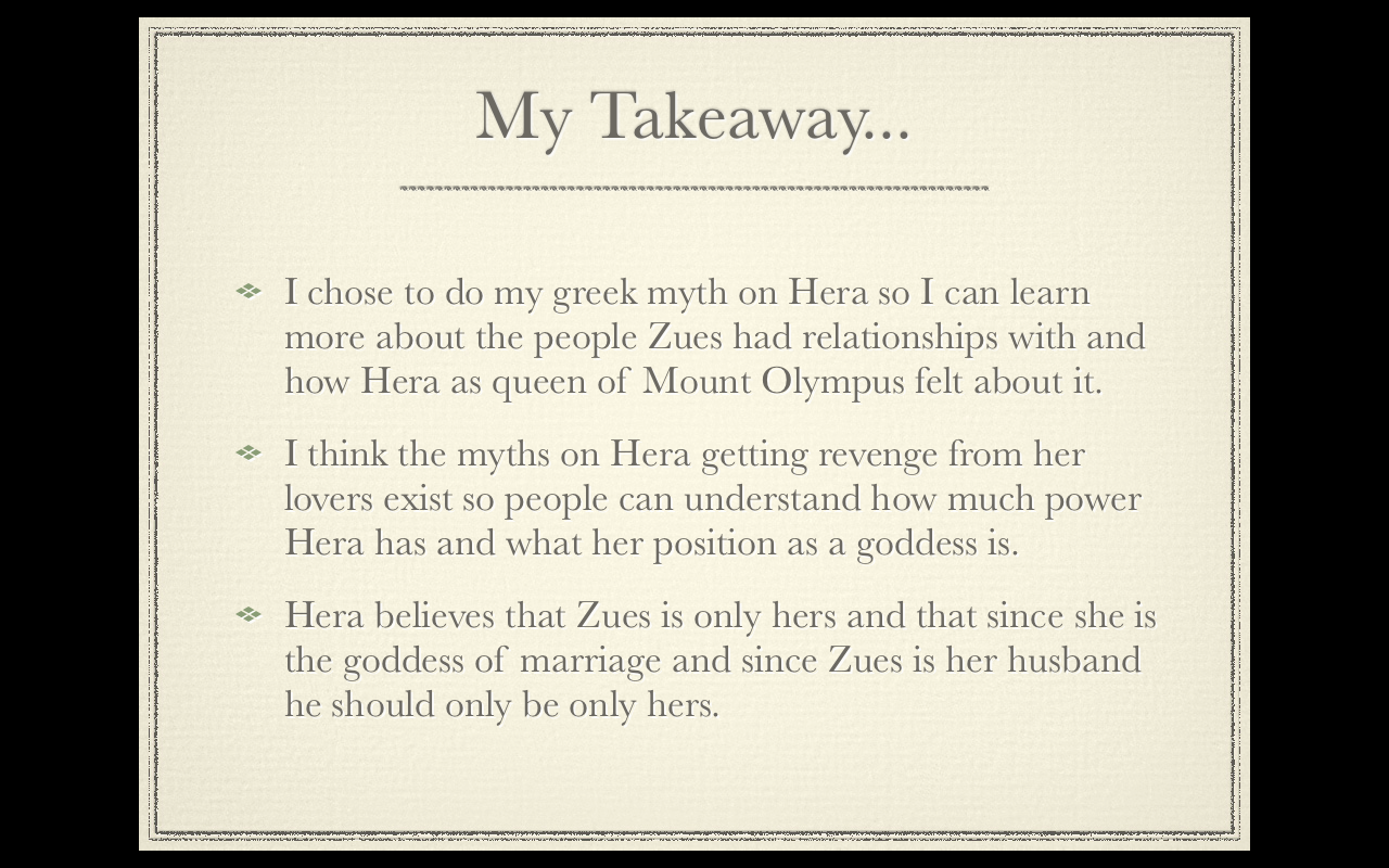 I think that readers should take away a lot of simple lessons that the book teaches. Readers should take a way lessons about friendship, and how to reveal someone's true identity when they aren't thinking along the correct lines like Aphrodite.