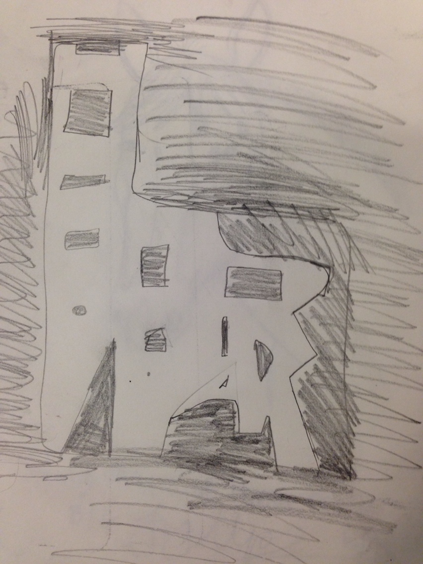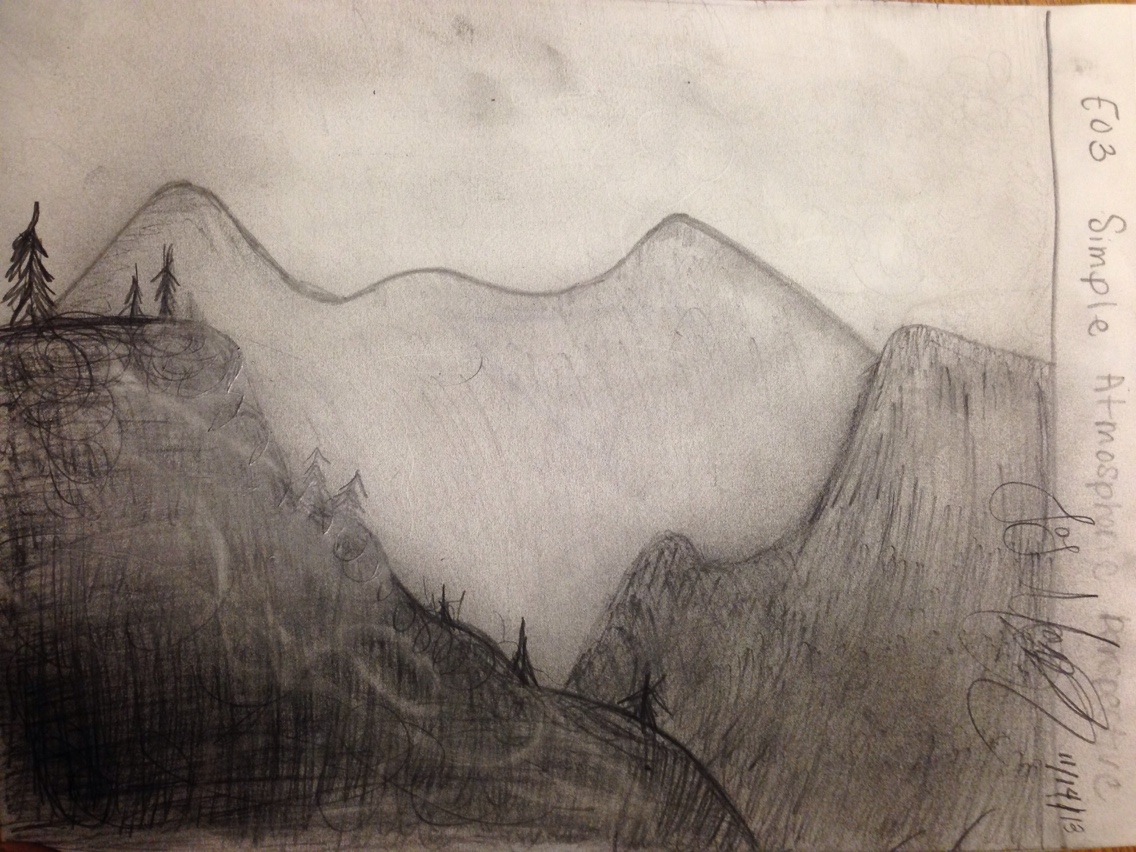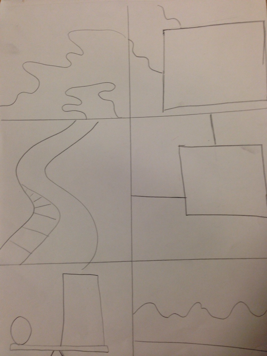 4) I mad my letters in levels , making them larger as they farther dow the paper to the point where "out" is out the picture.