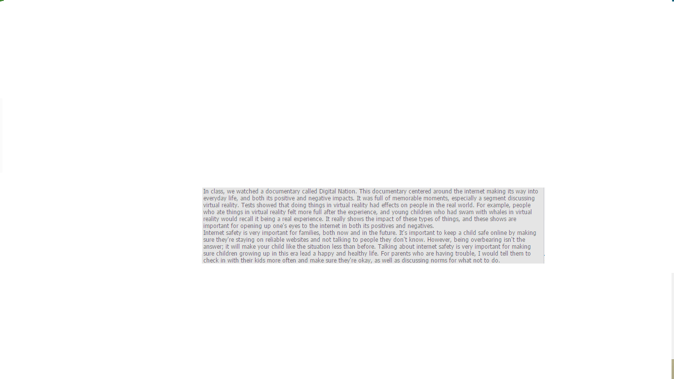 I remember vividly staying up late one night to finish an English assignment. Every month, we would write a letter to our English teacher, telling her what was going on in life, what we were planning on doing, that sort of thing. It was always the most superficial stuff: I saw this movie last week! I’m getting a dog!, whatever was literally happening in life. She would always respond with nice comments along the way.