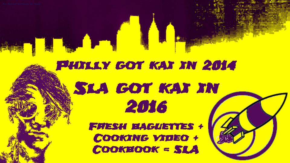 Once the graphics were done, I had to decide what to write and in what font. I already knew that I was going to put something about moving to Philadelphia and how and when I got into SLA, but I had to find the words and make it short. I decided to go with “[place] got Kai in [year]” because it was short and straight to the point. I had some trouble finding what words to use to say how I got into SLA and decided that I should make it like a math equation because it was simple, used few words and delivered a clear message. I decided to use the “Frijole” font because, as you can see, the Philadelphia skyline has a graffiti/street art look and “Frijole” went the best with it, giving it what I think is an appealing texture. I decided to make the letters the same color as the skyline so there would be harmony.