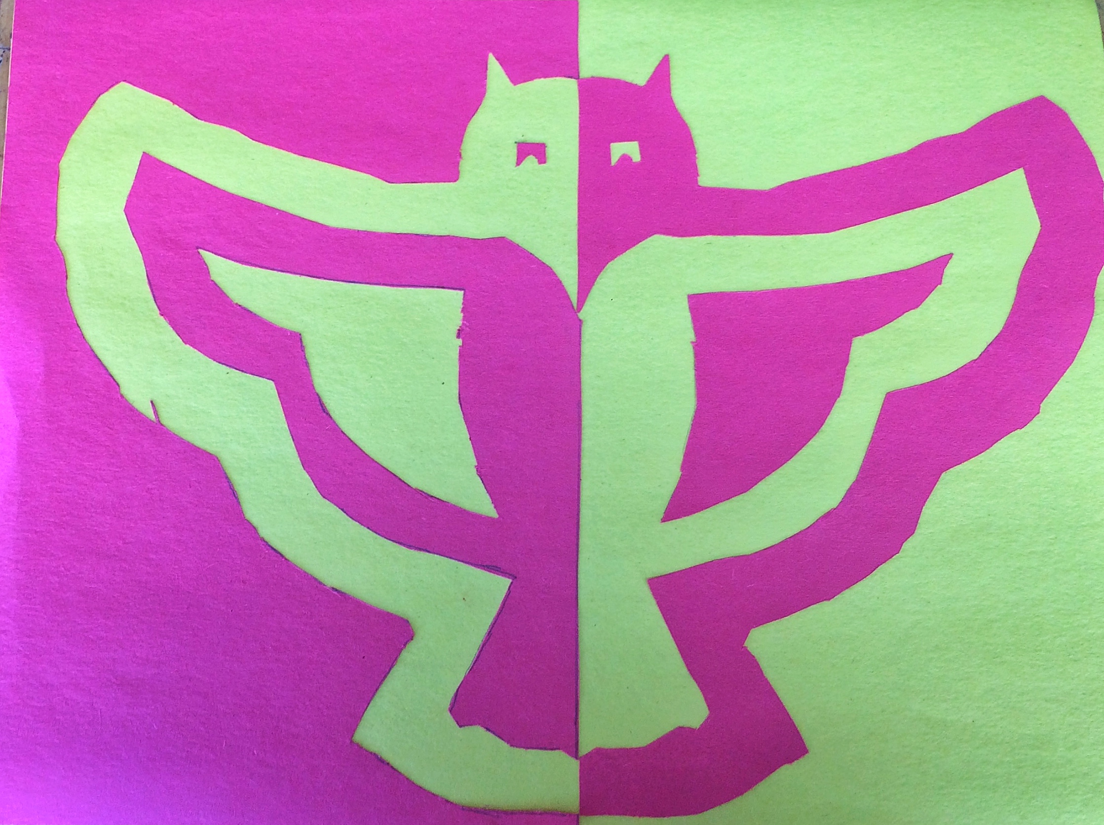 I found it by looking at the object, the owl in this case, and then paying attention to the space that is not the point of interest. I then cut out that area and the inside, the positive space, out of the purple.