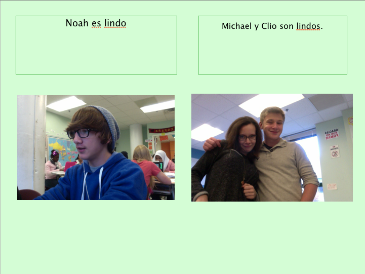 Mi amigos Gabe y Landis son cómicos y antipáticos. Gabe tiene catorce años. Él es muy alto y inteligente. Landis tiene los ojos verdes. Él es de Filadelfia. Son muy perezosos. Ma caen bien porque son buenísimos amigos.