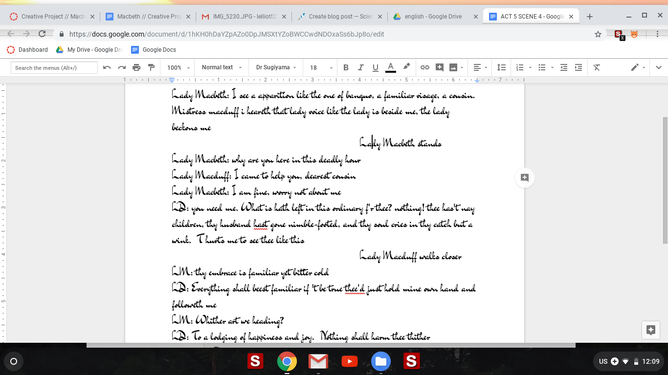 Due to overestimation of my ability to use time wisely, I was only able to complete about half of what I set out to do. I will be presenting two designs for a costumes as well as one fully completed costume. Through these designs you can see how they were made for their greatest advantage to be on screen.