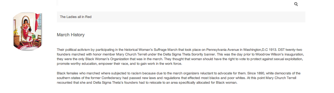 Anderson, Ashley. "Delta Sigma Theta Sorority ."American History . Suite101, Nov 12, 2009. Web. 9 May 2012. <http://ashleyanderson.suite101.com/delta-sigma-theta-sorority-a167616>.