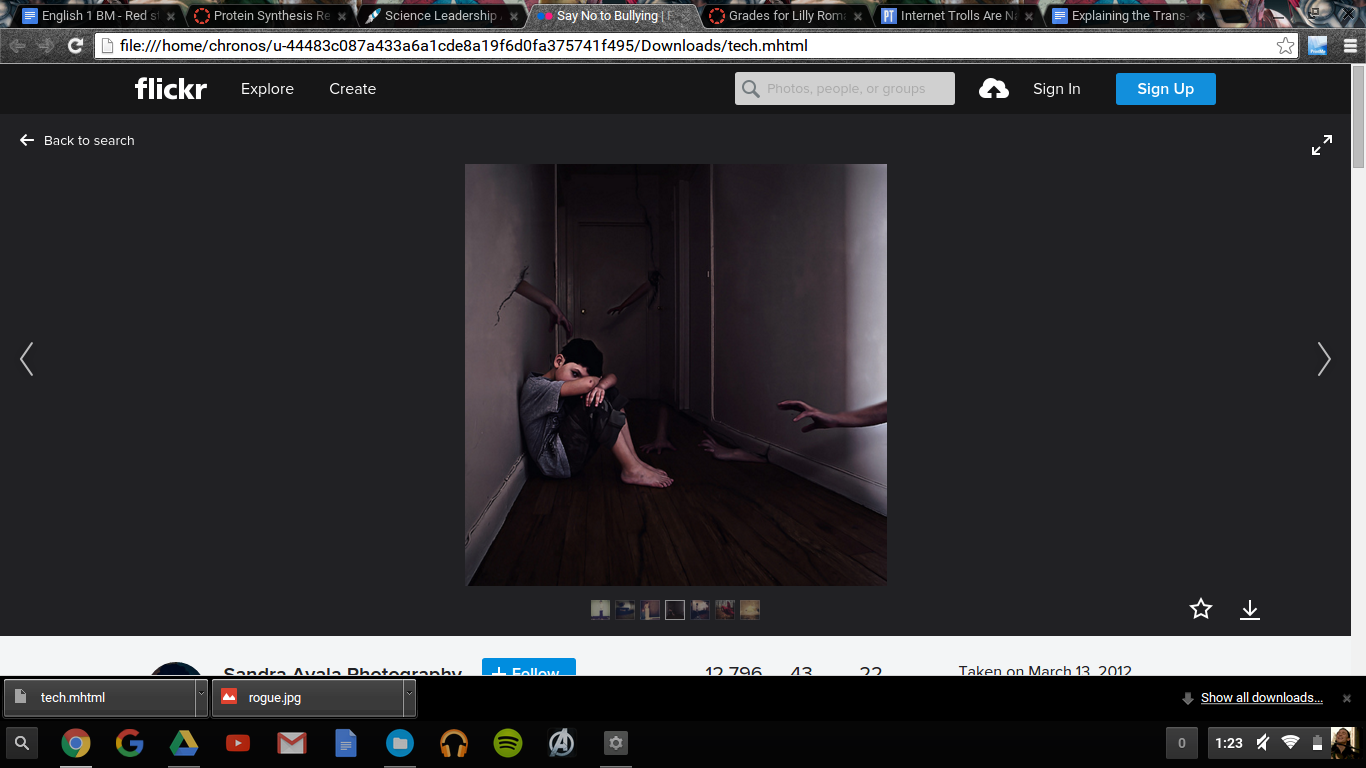 I also did not want the slide to appear crowded, so I used as little words that I could. As for the picture, I looked at pictures that had not been copyrighted and were open to the use of the public. I saw the picture and I really liked it. I also felt that I could relate to the picture. Art had ¨pulled me by the hand" when I was younger and has continued to do so these past years. It also appeared the be bleeding off of the page and brought my attention to it.