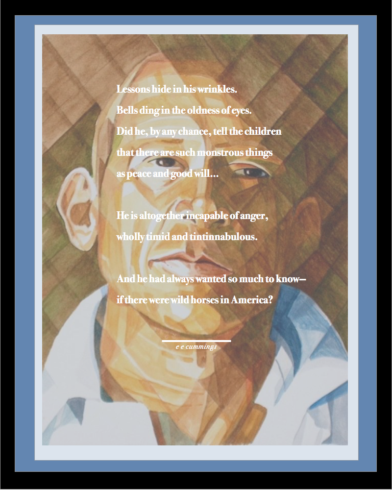 This is a quote from The Enormous Room by E. E. Cummings that offers a great glimpse into the literary beauty that is Cummings’ prose. The unique painting of E. E. Cummings as a young man was made by John Bedford. This piece as a whole is an artistic way to share the depth and intimate writing style found in The Enormous Room.